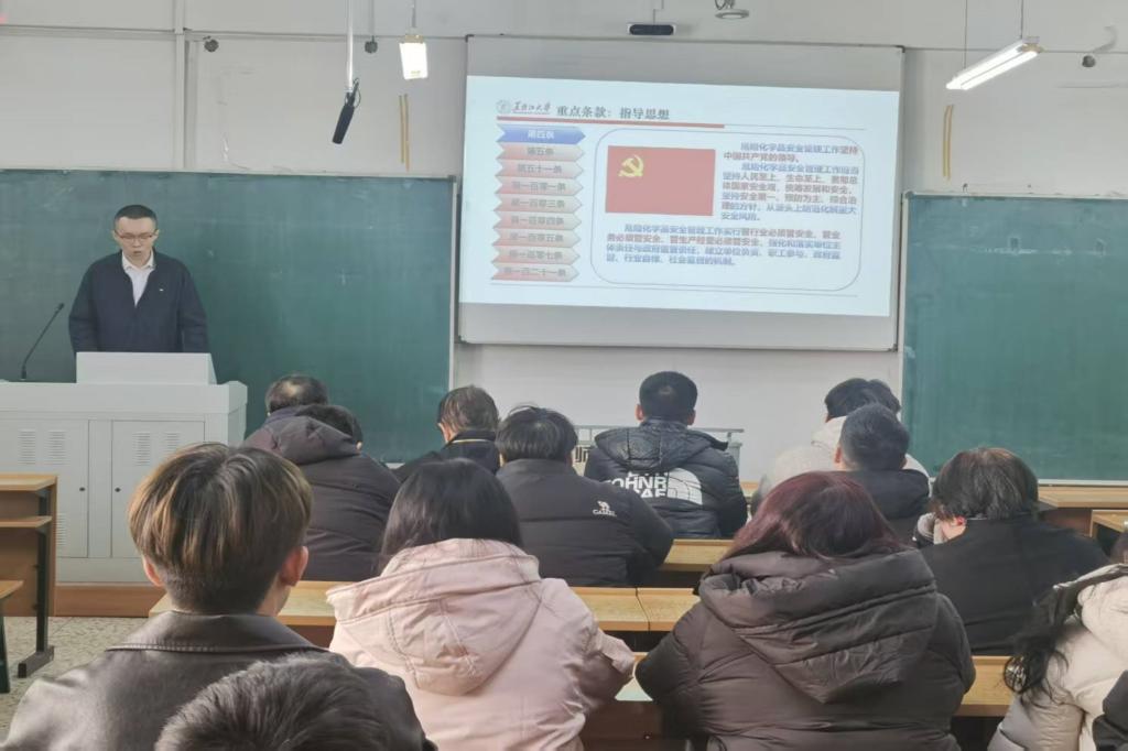 实验室建设与设备管理处实验室安全管理科副科长刘行风作专题培训。他结合管理工作实际,对《中华人民共和国危险化学品安全法》《易制毒化学品管理条例》重点条款进行了深度解读,详细讲解管制化学品申购和实验室废弃物回收处置全流程工作要求和注意事项,并对师生提出的疑问一一细致解答。