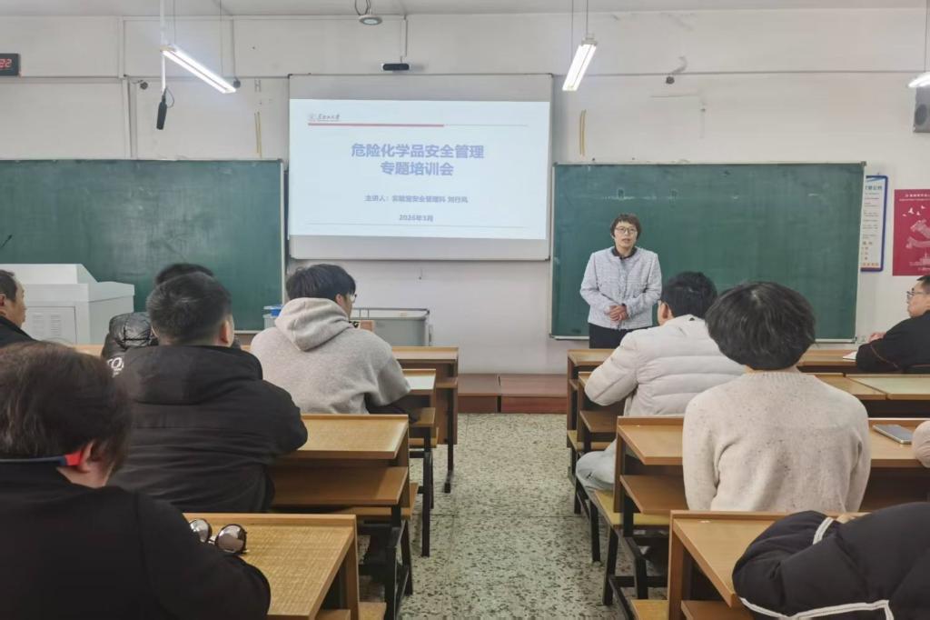 为规范学校实验室危险化学品安全管理工作,强化师生法治意识,2026年3月10日,我校在农学楼622室召开实验室危险化学品安全管理专题培训会,化学化工与材料学院、现代农业与生态环境学院、生命科学学院、电子工程学院、水利电力学院相关师生100余人参加培训会。培训会由实验室建设与设备管理处副处长李殿鹏主持。
